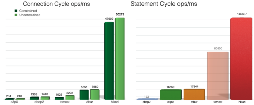 Hikari CP는 성능이 뛰어난 것을 강조하고 있다. (https://github.com/brettwooldridge/HikariCP#checkered_flag-jmh-benchmarks)